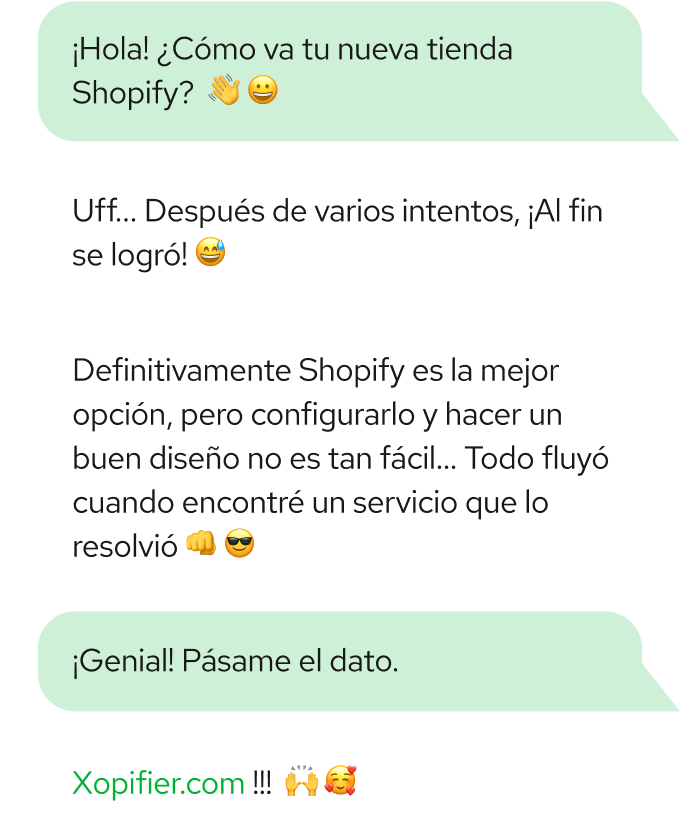 Toda gran tienda comienza con un primer gran paso. Con Xopifier, obtienes una excepcional primera versión (1.0) de la tuya, con un diseño personalizado de primer nivel y una configuración sólida en Shopify para empezar con confianza. Desde $980