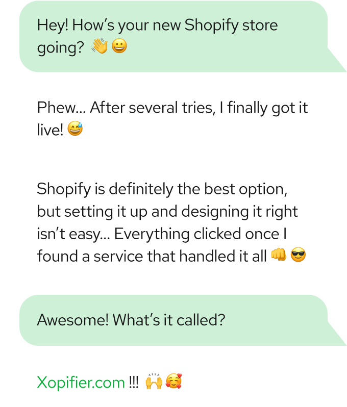 Every great store starts with a solid first step. With Xopifier, you get an exceptional first version (1.0) of your Shopify store — complete with a custom design and professional setup so you can launch with confidence. From $980